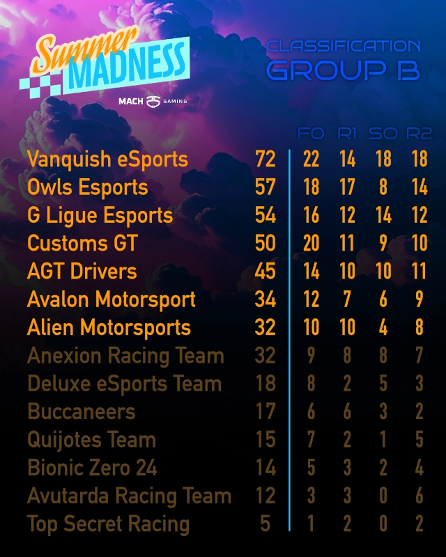 | Deluxe eSports Team | 0:56.615 | 8 |